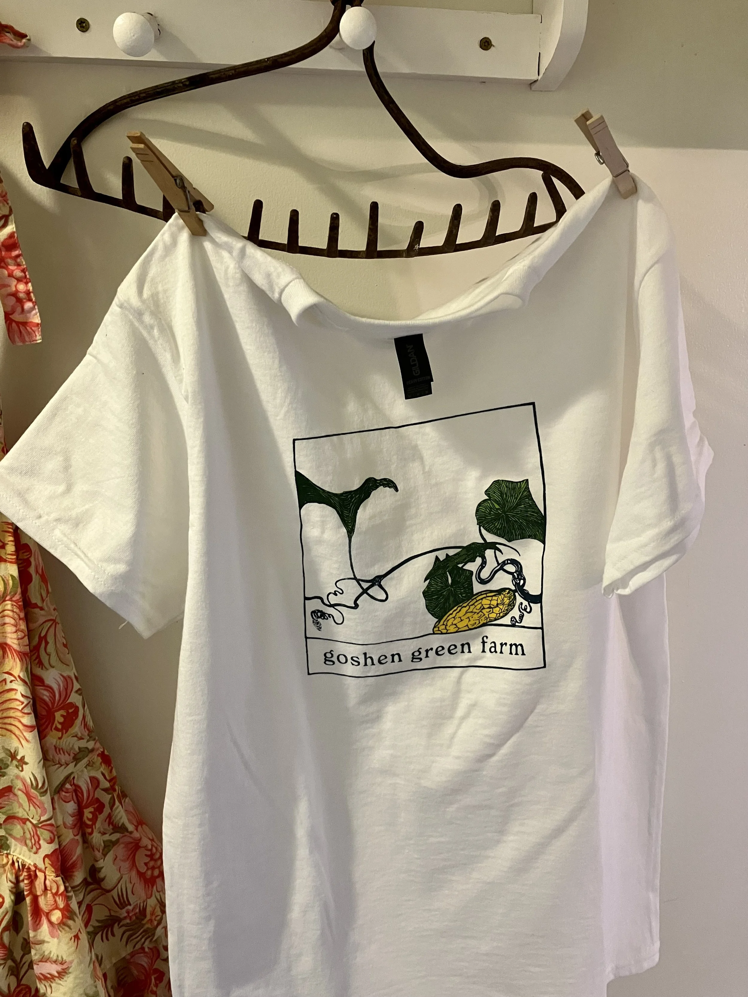 clothing Categories: Select a Category original artwork and prints clothing culinary events skin care teas tinctures clothing Goshen Green Farm T-Shirts $25.00