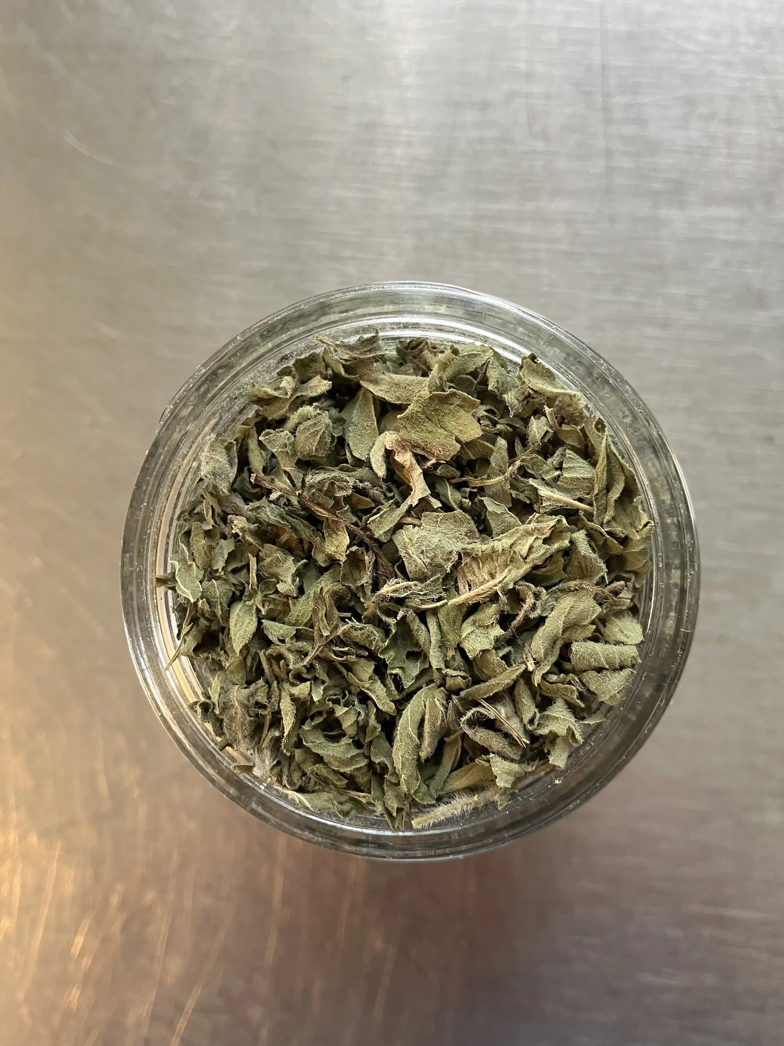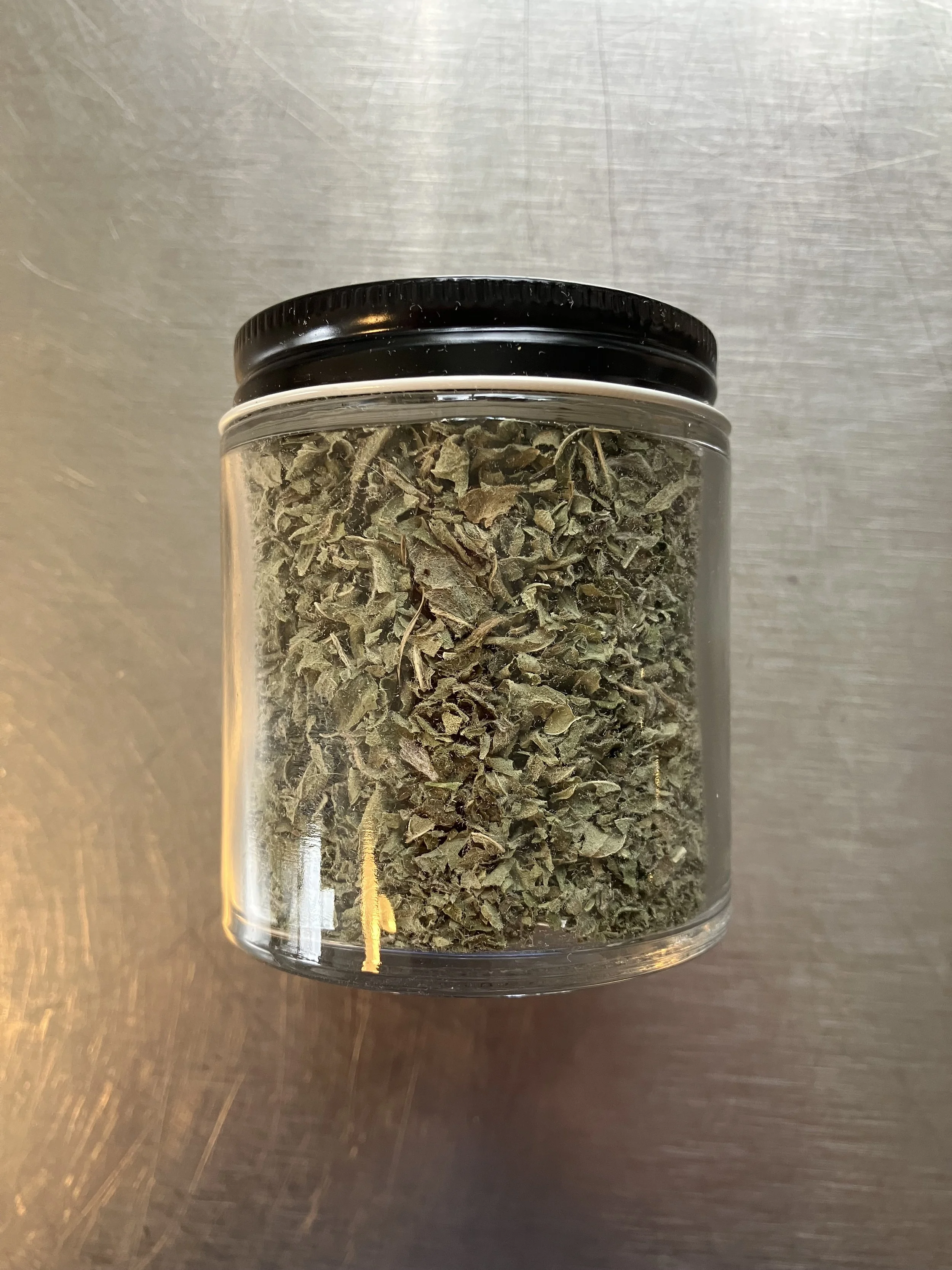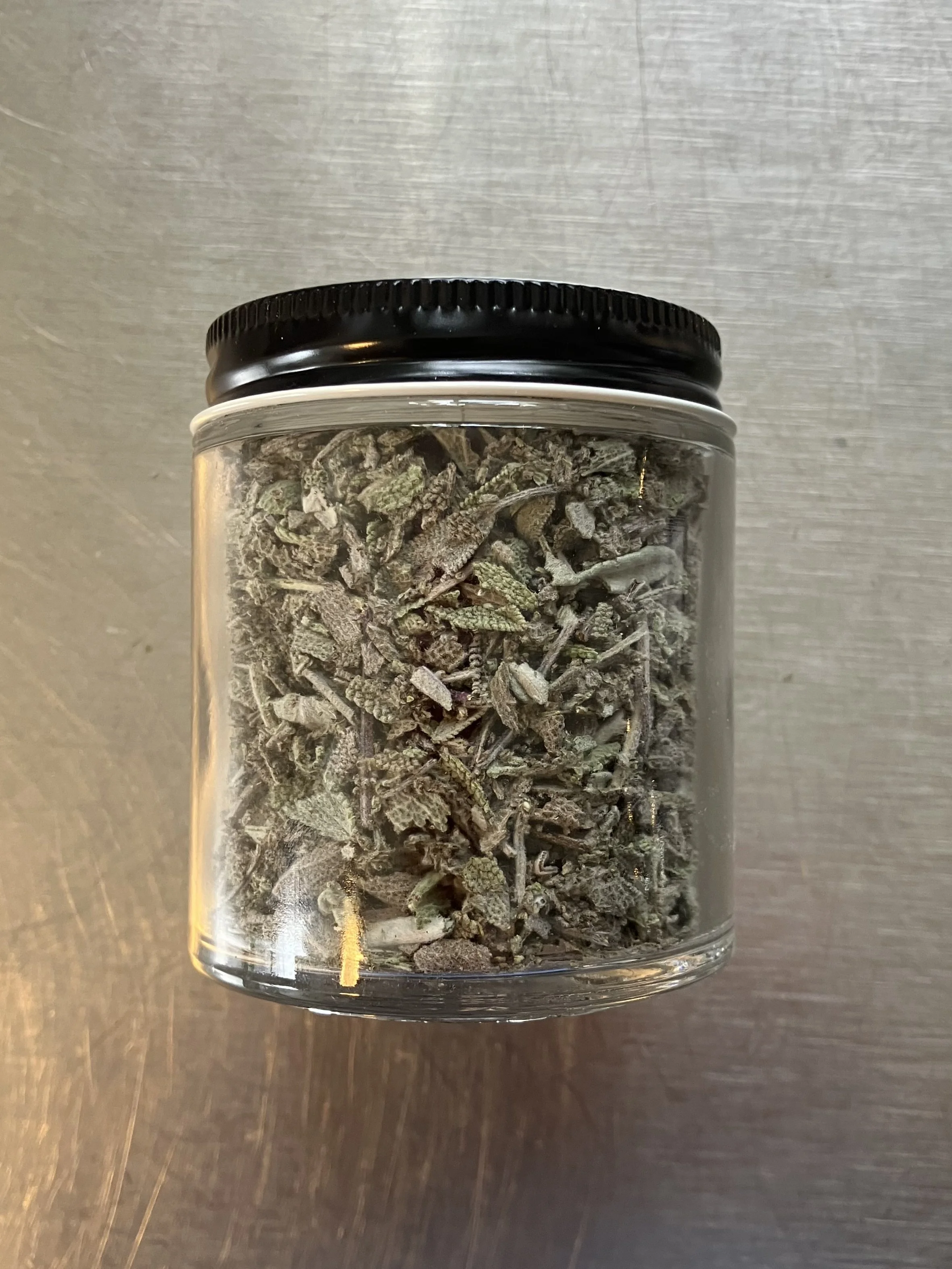 Rosemary harvested from Goshen Green Farm gardens. Grown from organic non-GMO seed here at the farm, processed and dehydrated by hand in small batches then bottled up by us! Never any chemicals used, at any point, from seed to your home