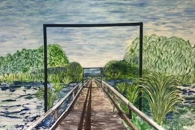 C. Merry Breden-McLoryd’s recent works have explored the intersection of movement with unexpected objects in unexpected places. Creating mobiles and installations that play with balance, light and movement. The combination of unusual materials - vintage crystals, mirrors, found objects, driftwood, scraps of metal and drawings, creates moving sculptures that interact with both the viewer and the environment. Merry is one of 2025’s SAP (Sustainable arts Program) Grantees through the Orange County Arts Council.